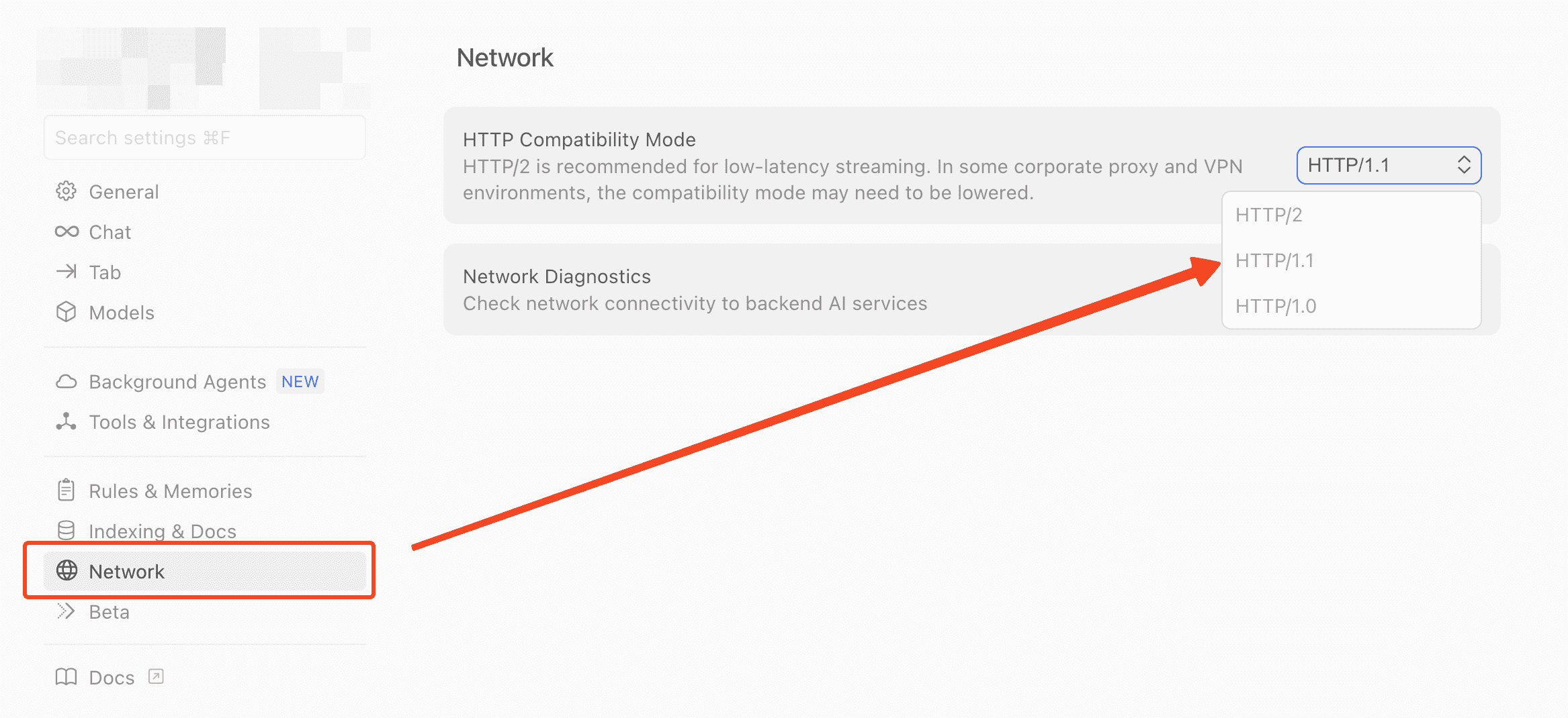 1、右上角齿轮 - Network - 改成 HTTP1.1,代理才能生效